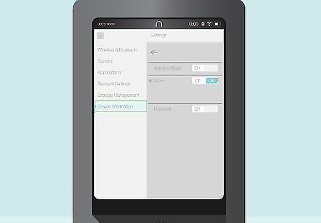 Tap Device Information in the Settings menu. The option to reset your Nook to factory settings is inside this sub-menu.