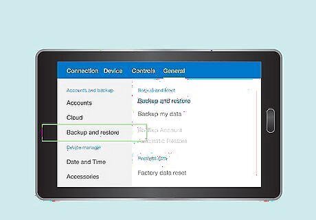 Select Backup and Restore in the left panel that appears. From here, you will be able to go on to the next step of officially beginning the process to factory reset your Tab.