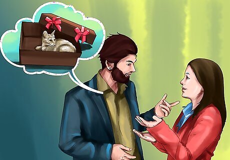 Ask them if they want a cat. While you may want to keep the cat a surprise, it is best to actually ask the recipient first if they want a cat. Some people may be allergic to cats, or they may not be allowed to own a cat in their home. Others simply may not want a cat. You can say “So I know you have a birthday coming up, and I was wondering: do you want a cat as a gift?” You might want to follow this up with another question, such as, “If you had a cat, what type of cat would you want?” Even if they have been discussing getting a cat, you should still check to make sure that they are fine with you adopting one for them. Some people want to choose the cat themselves or they may be waiting for the right time to adopt.