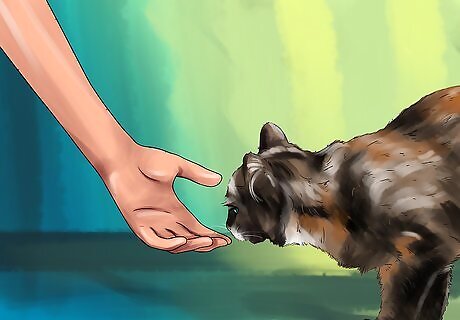 Teach the child how to handle cats. Before you give the cat as a present, you may want to introduce your child to a friend’s cat or a cat at the shelter. Show them how to properly interact with cats. Have them hold out their hands for the cat to sniff before they try to pet the cat. The child should be sitting when you first bring the cat to them. Let the cat sniff them. If the cat is relaxed, you can place the cat on the child’s lap. Teach the child that when the cat’s tail is wagging, it may mean that the cat is irritated. Older children should learn how to properly lift the cat from the ground. Show them how to scoop under the cat with one hand and support their back legs with the other.