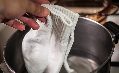 Wash with detergent and dry as usual. The socks should now appear much whiter again.