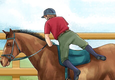Follow your instructor’s directions. If you are riding a horse for the first time, you should definitely have an adult with you to supervise you. Whether you’re taking a riding lesson or going for a pony ride on a friend’s horse, you should always follow the directions of your instructor. Make sure that you can hear your instructor, even from across the ring. Be sure to tell your instructor if you feel nervous, uncomfortable, or scared. This is normal, and your instructor can help you get over your fears. When you’re done riding, you will probably be asked to walk your horse for 10-15 minutes until it cools down. When its neck is about the same as the air temperature, you can dismount.