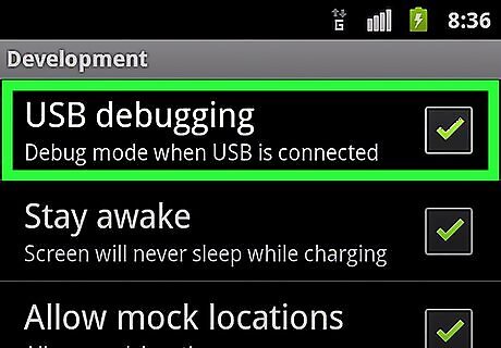 Tap on “Developer options,” then place a checkmark next to “USB debugging.” This is required to allow Kingo to root your Android.