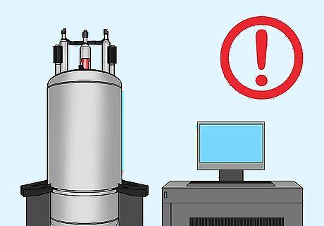 Know the safety precautions. While running an NMR isn't very dangerous, it involves being around strong magnetic fields. If you wear a pacemaker or magnetic implants, never enter the red or yellow circles on the floor surrounding the NMR spectrometer. These are lines taped on the floor, surrounding the spectrometer. They mark the beginning of the 5 Gauss and 10 Gauss lines. Remove any magnetic items from your pockets, such as credit cards or watches, as these can be permanently damaged, before inserting your sample.