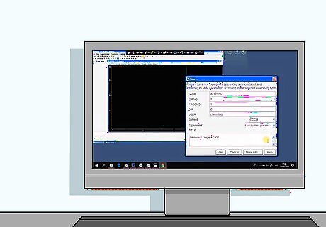 Select the type, name, and title of the experiment you want to perform. The name of your sample doesn't really matter, but just know what it is so you can find your data easily. The type of experiment depends on which nuclei you want to scan. Most organic molecules contain protons, so a 1D proton NMR is the most common. If there's phosphorus or fluorine, do NMR's on those too. Carbon-13 NMR's take longer than the other three, and are usually only needed if you are told to do so by your instructor, or if you're characterizing a compound not known to the literature. You may wish to run a 2D NMR if your compound is highly complex, or if 1D NMR does not help you identify it adequately.