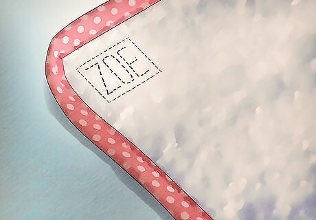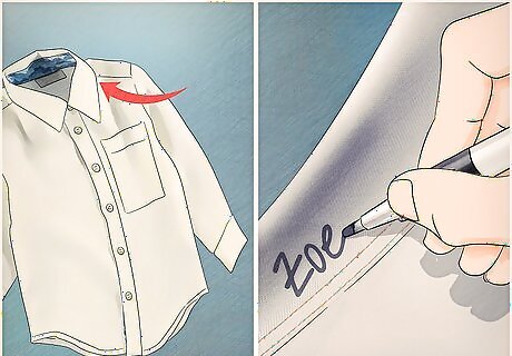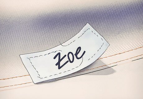 Sew a name or identifying mark into the fabric, alternatively. If iron-on patches sound like more work than they're worth, you can always take a needle and thread and sew a simple label of your own into the fabric. If you're inexperienced at sewing, you can make a simple "label" by sewing an identifying mark in the fabric instead. Passing your needle and thread through the fabric a few times and tying off the end should be sufficient. Use scissors to cut any loose threads. With especially young children, thread pulled free from labels could be swallowed and lead to choking.