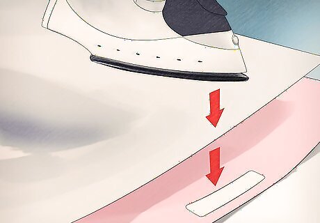 Iron-on the label. Lay the patch on the fabric so the design faces up and is positioned where you want. Put a cloth or light towel on top of the label, then press the iron firmly on the label, using slow, circular motions for approximately 30 seconds at a time. Then: Turn the fabric inside out and repeat this process to the back of the patch. Once complete, allow the label and cloth to cool for about a minute. If, after ironing both sides, the edges of the label still lift from the fabric, reapply your iron to the fabric for another 30 seconds in the fashion described. Always follow the directions that came with your iron-on label for best results. Some labels may require more or less time ironing, or more or less heat.