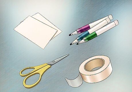 Collect your label making materials. Handmade card stock labels are an inexpensive way of labeling children's items that have hard surfaces. Additionally, you could turn this into a fun craft where your kids help decorate the labels. In all, you'll need: Card stock Markers (non-toxic, many colors) Pencil (optional) Scissors Tape (durable, non-toxic)