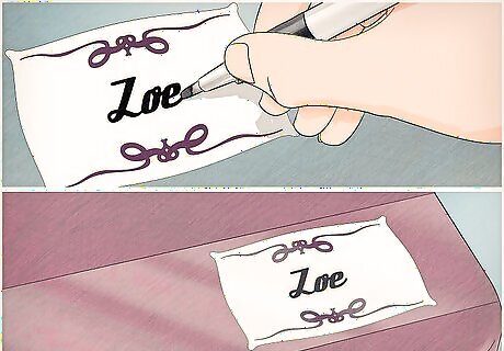 Create your card stock labels. Cut your card stock into small, label sized pieces. For larger items and containers, you may want a larger label so it is more visible. Write out your label message in marker in clear, large print so it is easy to read. After your message is written, you or your kids can use markers to color in any designs you've added to the label.