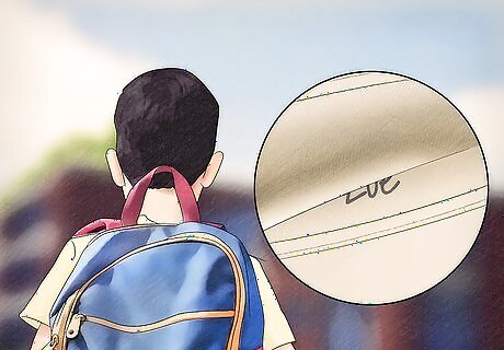 Choose areas that are discreet. Labeling visible areas of your children's clothing could put them at risk to child predators. Children often regard adults who know their name as safe. Hide labels on the underside of fabric to prevent this. When your children are under constant supervision, like when playing a sport or on a field trip, obvious labels are OK. In some cases, like when on school trips, obvious labels can help supervising adults keep tabs on your kids. As a general rule of thumb, if your child will at any point be unsupervised, even if it's only when walking home, all clothing labels should be hidden from view.
