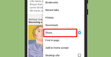 Tap on “Share” from the menu. In Chrome, you can find this option right after the Downloads text. This will open the Share tab.