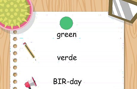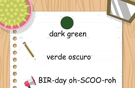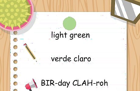 Use "verde" to talk about something that is green. The Spanish word for the color green is pronounced BIR-day. Remember that in Spanish, the letter "v" always makes a "b" sound, similar to the English words "bike" or "belt," although you don't close your lips completely as you would for an English "b." There are several shades of green that have a compound word to describe them. For example, lime green in Spanish is verde lima (BIR-day LEE-mah) and apple green is verde manzana (BIR-day man-ZAHN-ah).