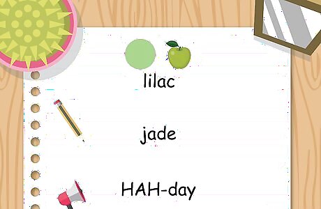 Learn additional words for colors named after minerals, flowers, or foods. You probably know words in English, such as "lilac" or "jade," that refer to both a color and a plant or mineral. In Spanish, you can use "jade" (pronounced HAH-day in Spanish) to refer to something green, or "lila" (LEE-lah) to refer to something purple. For example, Spanish speakers say "rosa" (pronounced ROH-sah) to refer either to a rose flower, or to a rosy color. Ámbar is a Spanish word that describes the deep, golden-orange color of the mineral amber. Another good orange word is "albaricoque" (ahl-bah-ree-COH-kay), the Spanish word for "apricot."