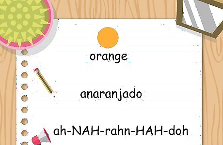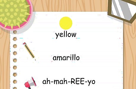 Pronounce amarillo ah-mah-REE-yo to describe something yellow. You may be familiar with the city of Amarillo in Texas, but the city's name is given the English pronunciation. You may have to practice this one more to train your brain to produce the correct pronunciation. Other shades of yellow have different words in Spanish. For example, you might use the word limón (lee-MOHN), Spanish for "lemon," to describe a lemony-colored object, or dorado (doh-RAH-doh) for something that is gold-colored.