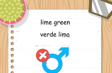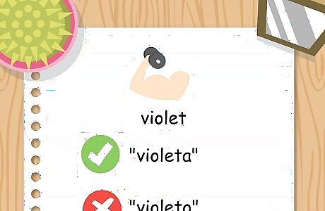 Recognize colors that are invariable. Color words that naturally end in "a" do not change gender and don't have plural forms either. In other words, if you were describing a masculine noun in Spanish as being violet, you would not change "violeta" to "violeto."