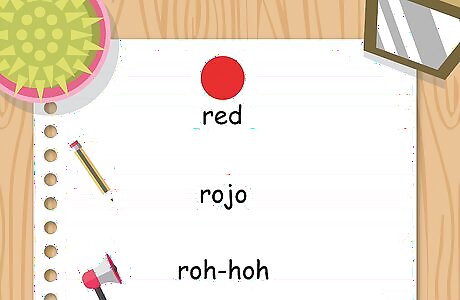 Say rojo, pronounced roh-hoh. The word rojo is Spanish for the color red. To pronounce this word correctly, you must roll the "r." Learning how to roll the "r" can be difficult, especially if your first language is English. One way to get better with the rolled "r" is to say the word "butter" over and over again very quickly. Your tongue is in the same position when making the "tt" sound as it is when you make a rolled "r" sound correctly. You also can start with an "l" sound, which puts your tongue in the right position. Try to gradually morph it into a rolled "r."