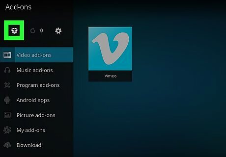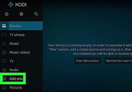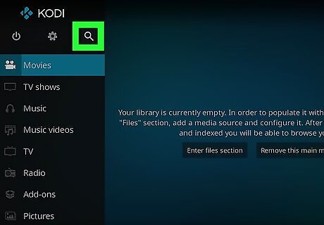 Return to the Kodi home screen and tap the Search icon. It’s the magnifying glass near the top of the screen.