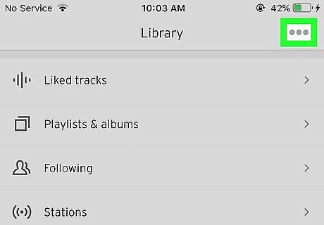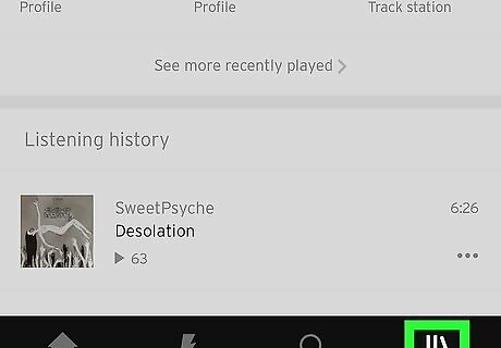 Tap the Library icon in the bottom right corner. The Library icon looks like two vertical lines with a single slanted vertical line on the end. Tap Android 7 Expand Left in the upper left corner of the screen until you reach the Library page. Depending on your most recent SoundCloud activity, you may need to tap the Back button multiple times to reach the Library page.