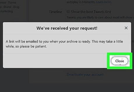 Click Close when prompted. This confirms that your X archive link has been sent to the email address that you use to log into X.