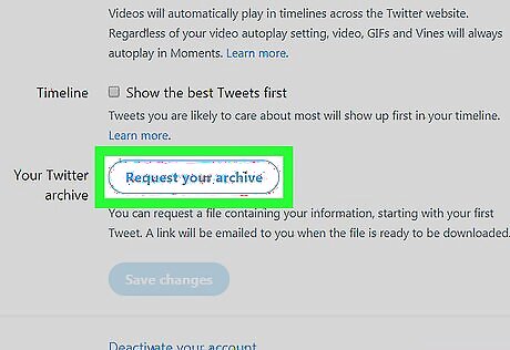 Scroll down and click Request your archive. It's near the bottom of the page, just right of the "Your Twitter archive" heading.