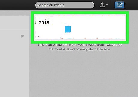 Select the month of your first tweet. On the right side of the web page, find the heading for the first year in which you tweeted (e.g., "2014"), then click the left-most box below that heading. The box must have a blue bar in it.