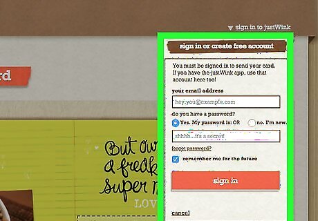 Create an account when prompted. In order to send your card, you'll have to create an account by doing the following: Enter your email address in the "your email address" text box. Check the "no, I'm new" box. Enter your first and last name. Enter your password twice. Enter your ZIP code. Enter your birthdate.