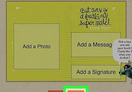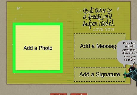 Add a photo to the card. If available, click the "Add a Photo" text box, then click upload a photo, select a photo on your computer, and click Open. Again, this option may not be available for your selected eCard. If it isn't available, skip this step.