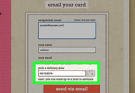 Select a delivery date if necessary. If you want to schedule your card for future delivery, click the calendar icon to the right of the "pick a delivery date" text box, then click the date on which you want to send out your card. You can schedule cards up to a year in advance.
