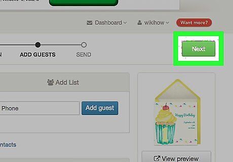 Edit the card's text. Click an item that can be edited (e.g., the text on the eCard cover), then enter the text you want to display, format it by changing its color or font, and click Done. You may have to click one of the card tabs (e.g., INSIDE) at the top of the page to proceed to the next page of the card. You can also edit other components of your card, such as the envelope's text, on some eCard templates.