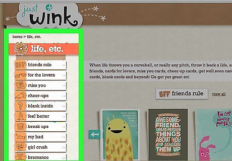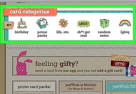 Select a card category. Click one of the categories in the "card categories" bar. Doing so will open a list of card templates within your selected category. You can click the arrow on the right or the left side of the bar to scroll through categories.