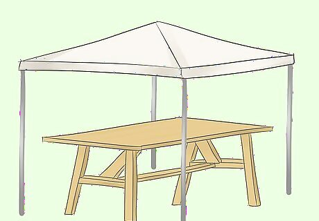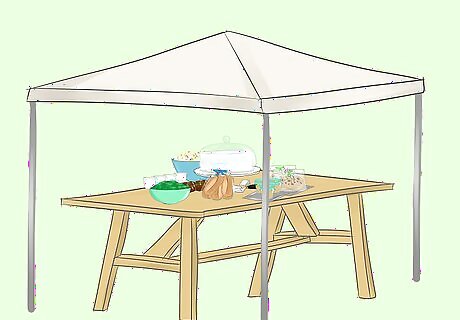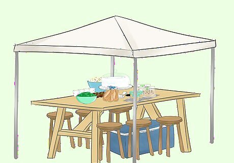 Set up a beach tent over your table. In case it rains, customers, and you, will have a dry place to stand. Tape posters to the tables as well. If you made a menu, or list of all your products with ingredients and prices, tape that somewhere too.