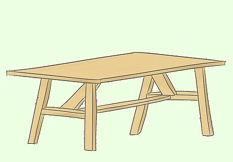 Assemble the table. If you have more than one, make sure they line up perfectly with one another, and make sure they are level so they don't wobble. Line the table with a table liner, then a table cover.