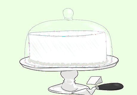 Put cakes into special containers. Put cakes into boxes for now. When you reach the bake sale table, line a cake tray with a lace doily. Place the cake on top, and put a cake cutter next to it. Somewhere on the cake tray's lid, tape the label so everyone knows what kind of cake it is.