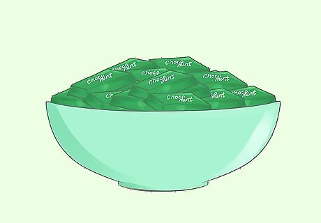Bring any mint candies you might have bought. The chocolate ones with the mint filling are best. Keep them in their package until you reach your table, and then pour them into it until the bowl is full. Keep any extras in case you run out, and don't charge for these.