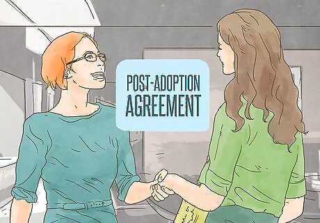 Make a post-adoption openness agreement. While an open adoption isn't necessarily similar to a shared custody arrangement, typically the birth mother has the ability to visit the child and receive status updates on the child's growth and progress. The degree of openness allowed also may be governed by your state's adoption laws. Your adoption agency will be able to walk you through those requirements. Your openness agreement will establish what contact is allowed, whether the birth mother can have direct contact with the child or contact through a mediator, and how often the birth mother will receive information about or photos of the child. The openness agreement can be filed with the court along with your other paperwork to make it a legally binding contract.