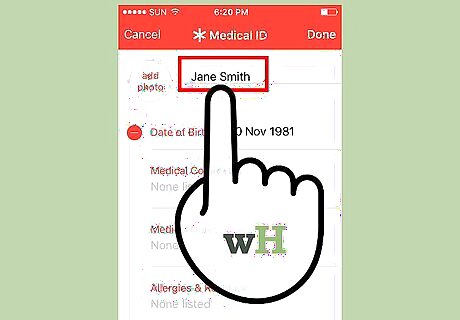 Review the information that is automatically added. The Medical ID will pull basic information from the "Me" contact on your device. You'll typically see your name and birthday already filled in.