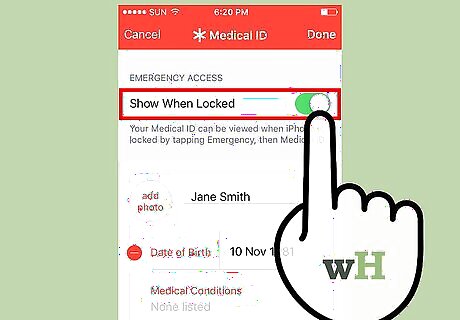Ensure that "Show When Locked" is enabled. This will allow anyone to open your Medical ID when the iPhone is locked. This is essential to use the Medical ID if you lock your iPhone. Be aware that there is a privacy concern with this. Anyone that can pick up your phone will be able to see any of the medical information that you've entered. This can be useful for responders, but can also lead to nosy coworkers and friends discovering your medical information. If you don't keep your iPhone locked, you don't need to enable this and responders will be able to find the ID in your Health app. It is highly recommended that you use a passcode or Touch ID lock on your iPhone.