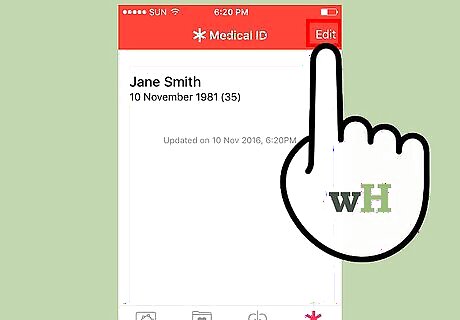 Tap "Edit" whenever you need to make changes. You can change the information on your Medical ID at any time in the Medical ID tab of the Health app. Just tap the "Edit" button and then change or delete information on the ID. You can delete the entire Medical ID by scrolling down to the bottom of the Edit screen and tapping "Delete Medical ID."