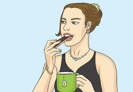 Have a light dinner or snack before the opera. Because operas tend to be longer than the average musical, eating something beforehand can keep you in a good mood and focused on the play. Most theaters do not allow guests to bring food or drink into the venue, so eating beforehand is always the safest option. Drinking something with caffeine, like tea or soda, can help you stay alert if you tend to doze off during musical productions. Some theaters allow patrons to eat hard candy, cough drops, or gum during the performance. Ask ahead if you think something to chew on might help you pay attention.
