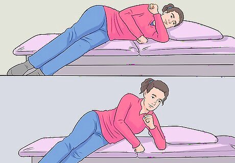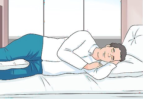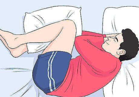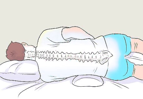 Keep your head, neck, spine, and hips aligned. Avoid curving your back as much as possible to prevent additional pain. If you sleep on your back, place one pillow at the base of your back and one underneath your knees. For side sleepers, place a pillow between your knees to keep your hips aligned. This will help your body maintain your spine's natural curve, preventing muscle or tissue aggravation.