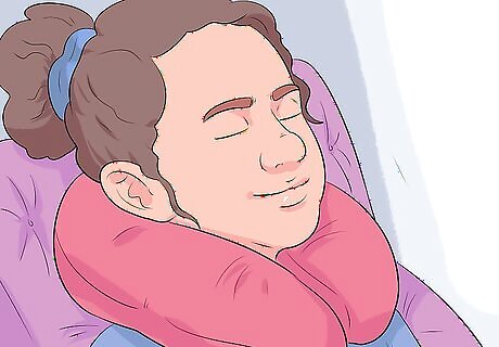 Use a horseshoe-shaped pillow while sleeping upright. If you're sleeping while upright, letting your head drop to one side can cause neck and spine soreness. Horseshoe-shaped pillows are ideal for sleeping with back pain in a car, plane, train, or reclining chair. Pillows made of memory foam can contour to your body and are best at alleviating back pain. Feather pillows can also conform to your head and neck, though they can lose support and collapse over time.
