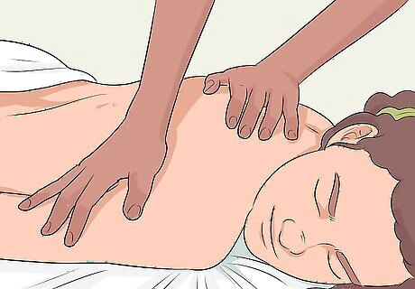 Massage your back if your pain is caused by overworked muscles. Massages can soothe strained or sore muscles. If you're sleeping in the room with someone else, ask them for a massage to soothe your back. You can also massage your own back if you cannot get one from someone else. To massage yourself, knead the area of tension or pain in circular motions with your fingers or a massage roller.