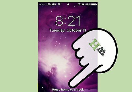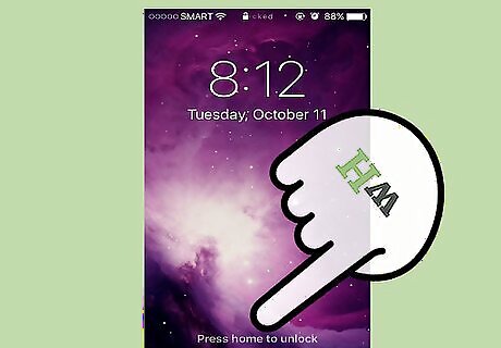 Tap the Home button to wake up your iPhone's screen. You can also press the "lock" button on the right side of your iPhone's casing. If you have "Raise to Wake" enabled, simply pick up your phone to wake up the lock screen.