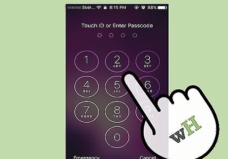 Rest your finger on the Touch ID sensor. If you have scanned your fingerprint before, this will unlock your phone! If you want to activate your passcode instead of using your fingerprint, use a non-registered finger on the Touch ID sensor. This will bring up the passcode interface.