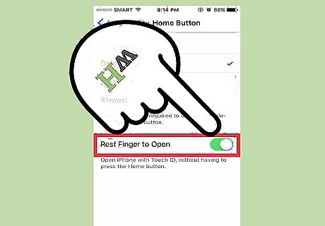 Tap the switch next to the "Rest Finger to Open" option. This will disable your "press to unlock" feature; to unlock your phone from now on, you'll simply need to rest your finger on the Touch ID sensor.