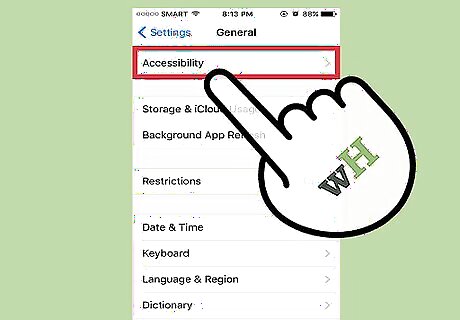 Tap the "Accessibility" option. You can change aspects of your iPhone's accessibility--such as zoom, text size, and assistive touch--from here.