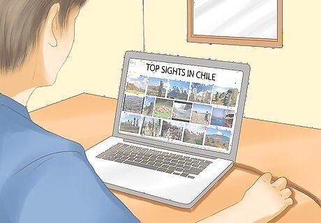 Research the top sights in Chile. Do a search online for the top destinations and sights in Chile so you do not miss anything on your trip. Plan to spend time in Santiago, the capital city, and visit San Marco's Cathedral in the northern city of Arica. Check out Easter Island, the most isolated inhabited island on earth as well as Torres del Paine National Park, where you can see the Andes and the Patagonian steppe. There are many great sights in Chile so you may narrow down your options by interest and budget. If you are a Pablo Neruda fan, visit his homes, which have become historic sites scattered throughout Chile. If you enjoy wine, you may do a wine tour and sample some of the best wine at Chilean vineyards.