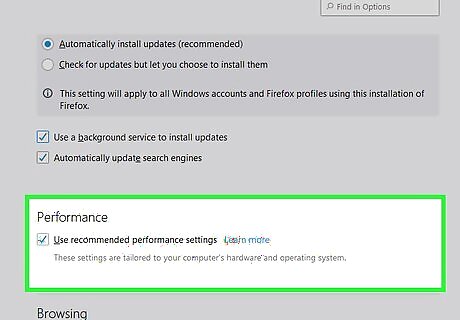 Scroll down to the ″Performance″ section. It’s toward the bottom of the page.