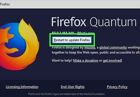 Click the Update to button. The update will now download. Once it’s ready to install, the ″Update″ button will change to ″Restart to update Firefox.″