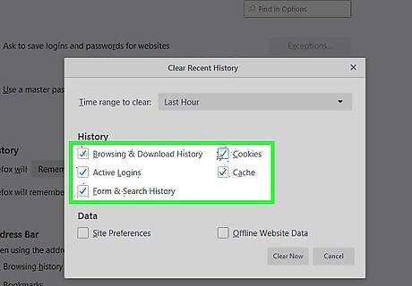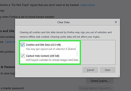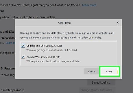 Clear your cookies and cache. Now that you’ve updated your settings, it’s time to clear out what’s collected so far. See this method to learn how.